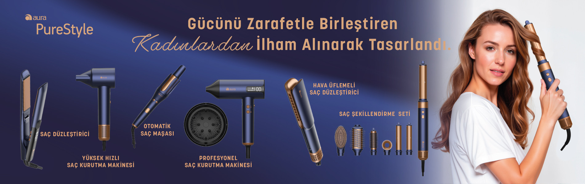 Aura PureStyle serisi; saç şekillendirme seti, saç düzleştirici, yüksek hızlı saç kurutma makinesi, otomatik saç maşası ve profesyonel saç kurutma makinelerinden oluşur. Hava üflemeli teknoloji, yüksek hızlı motorlar ve iyon sistemi sayesinde saçın daha hızlı ve kontrollü şekilde şekillendirilmesine yardımcı olur.